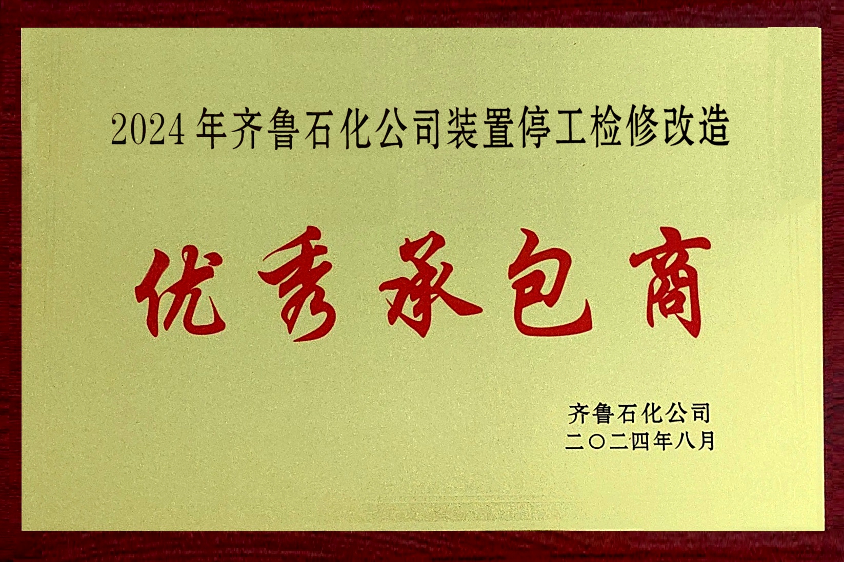 8月6日,在齊魯石化召開的2024年裝置停工檢修改造總結表彰會上,我公司榮獲“2024年齊魯石化公司裝置停工檢修改造優秀承包商”表彰。